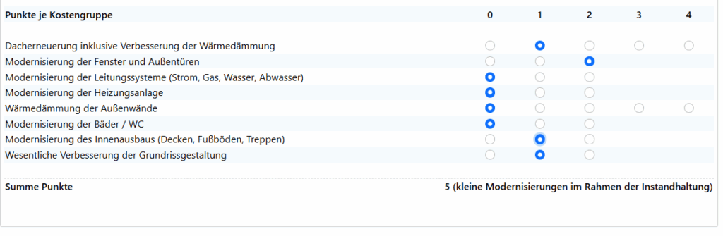 unter 5 = kleine Modernisierungen im Rahmen der Instandhaltung